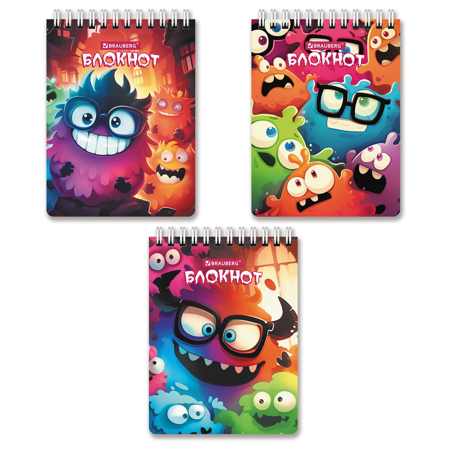 Блокнот МАЛЫЙ ФОРМАТ А6 97х145мм, 60л, гребень, картон, клетка, BRAUBERG МОНСТРИКИ, 116997
