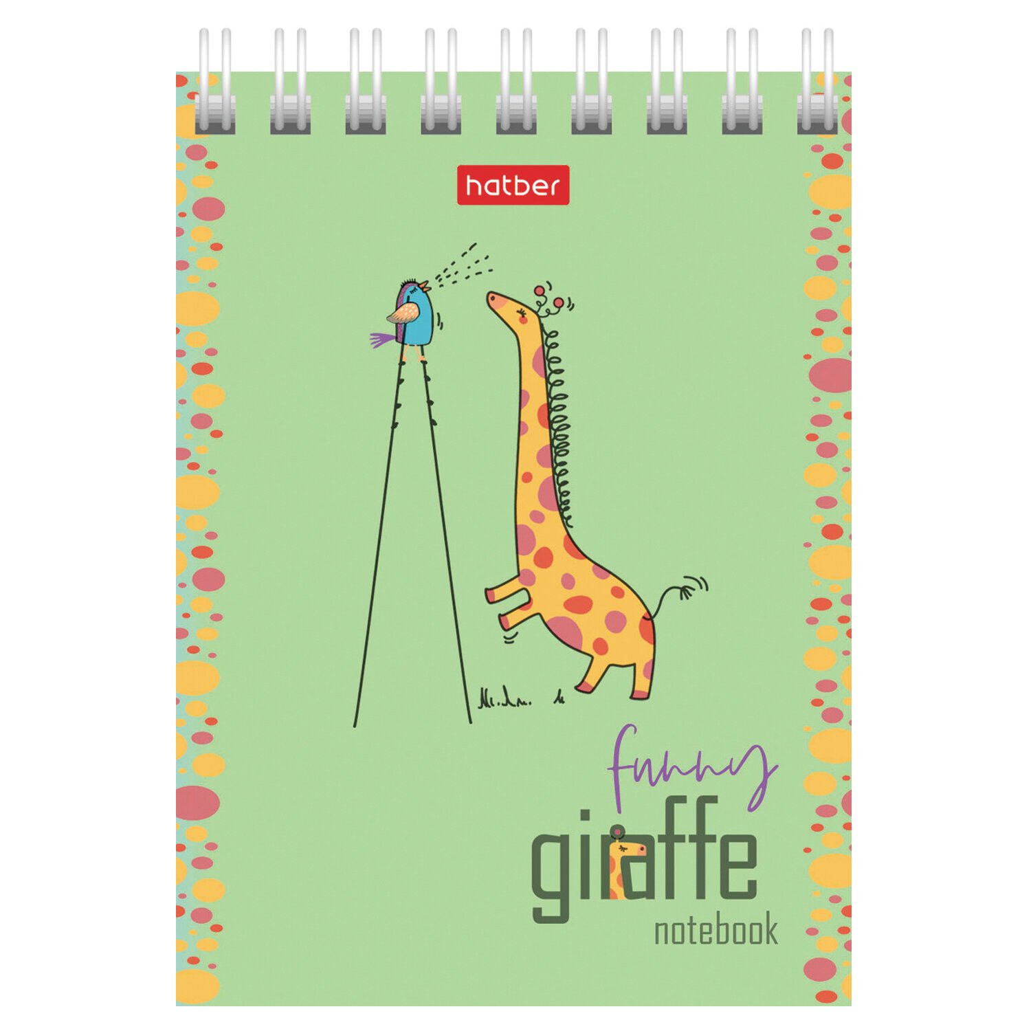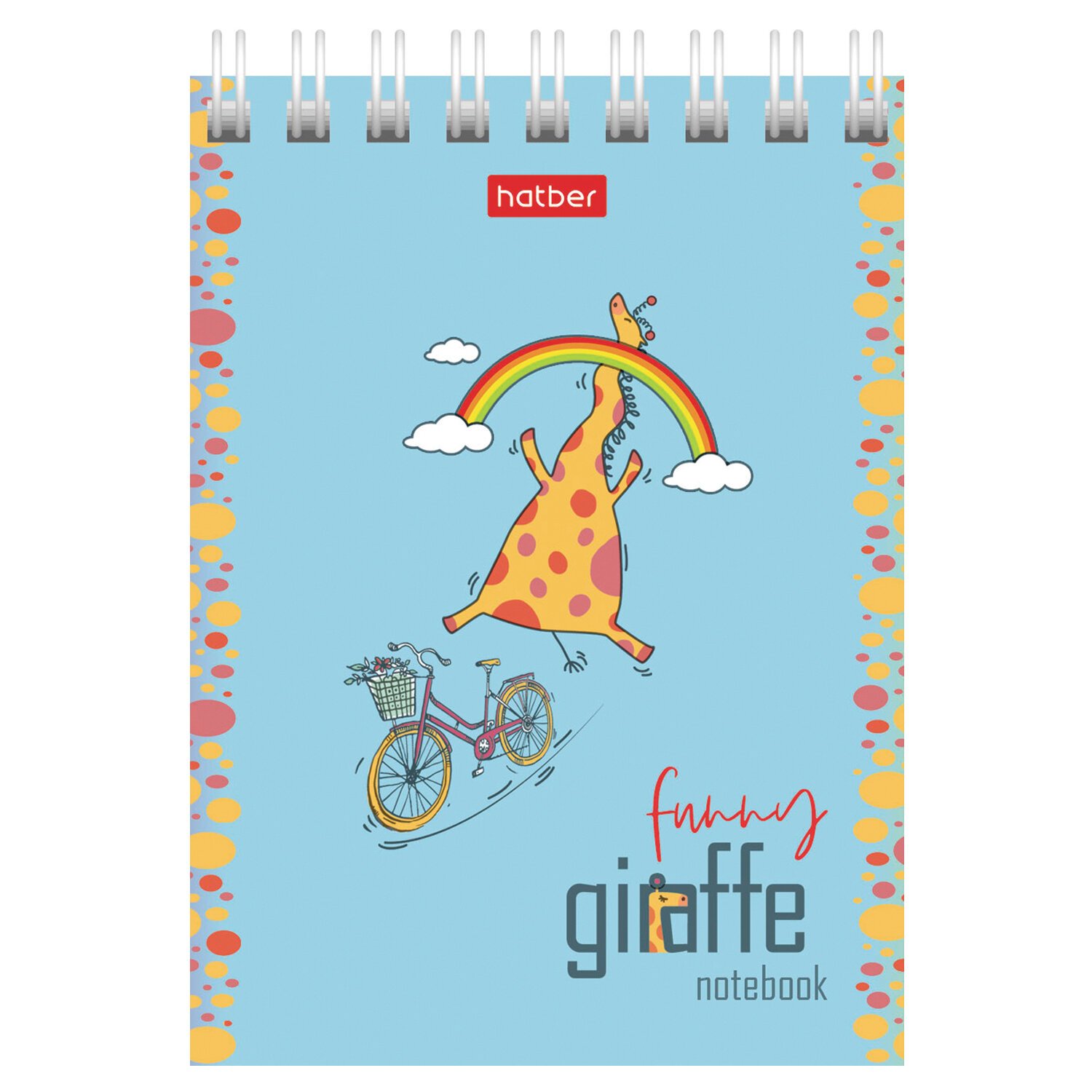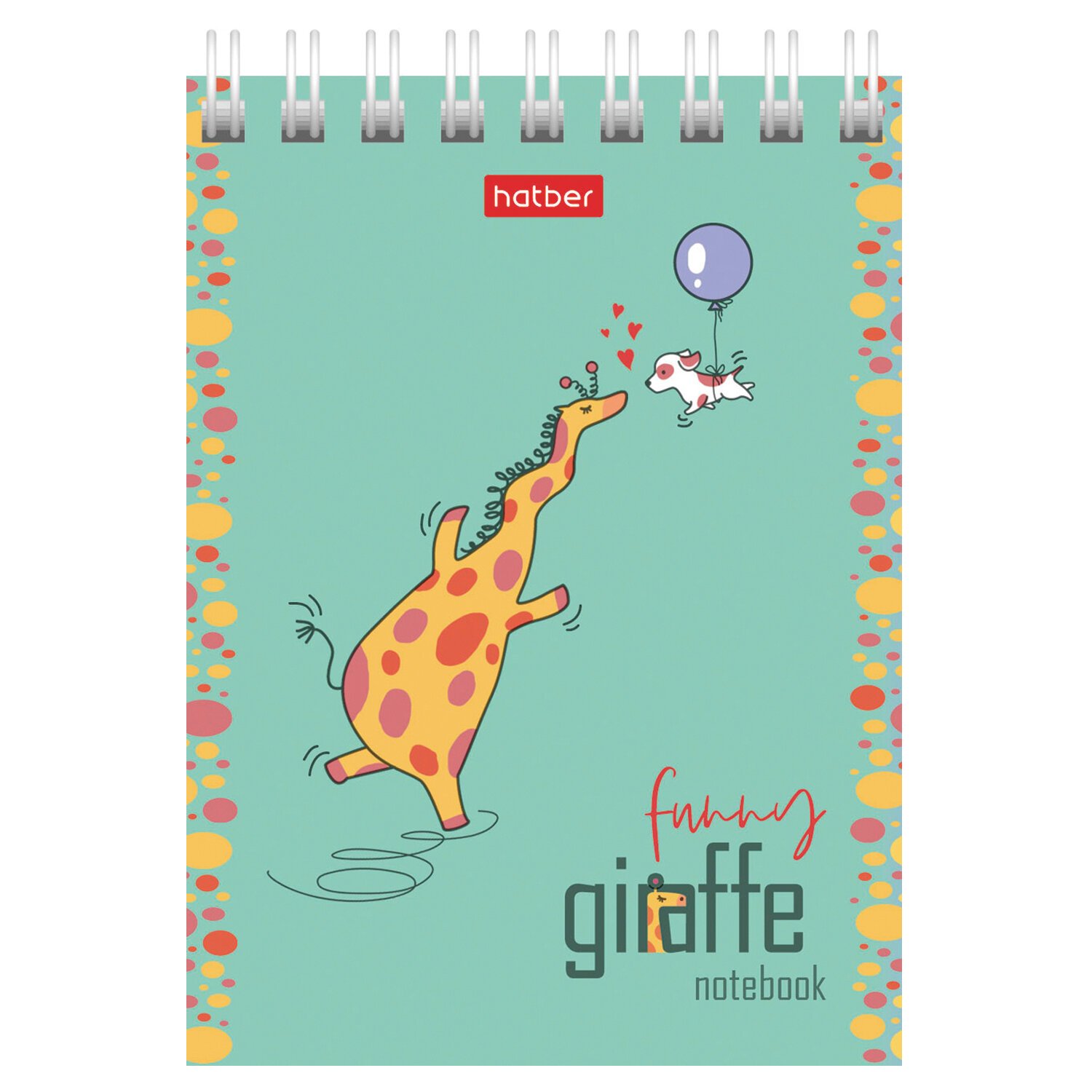 Блокнот МАЛЫЙ ФОРМАТ А7 60л, гребень, картон, клетка, HATBER, Веселый жираф, 081165, 60Б7В1гр