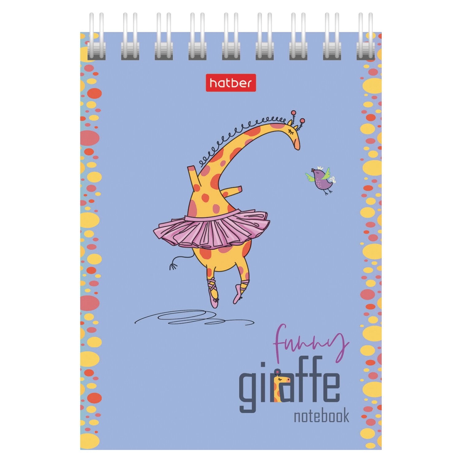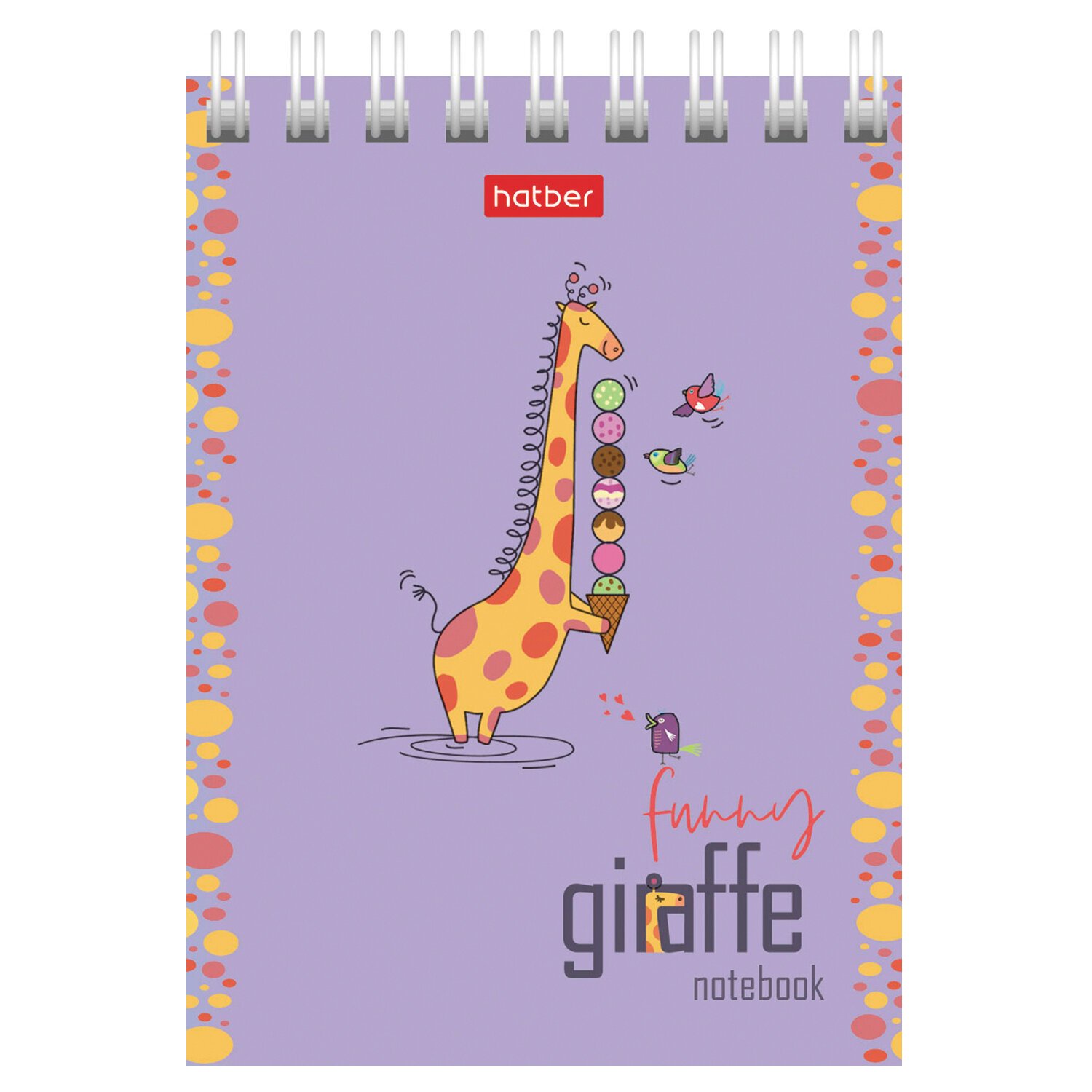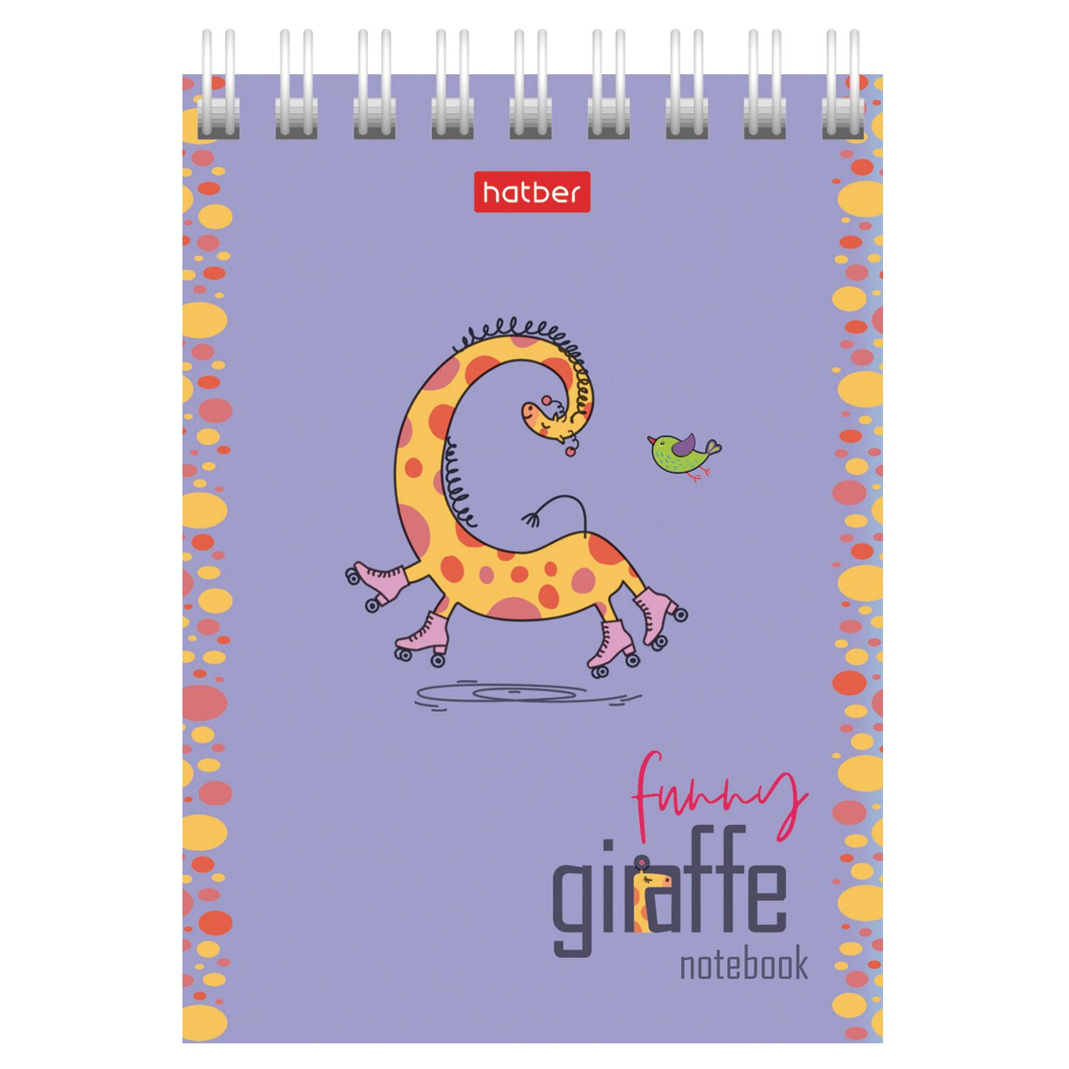 Блокнот МАЛЫЙ ФОРМАТ А7 60л, гребень, картон, клетка, HATBER, Веселый жираф, 081165, 60Б7В1гр