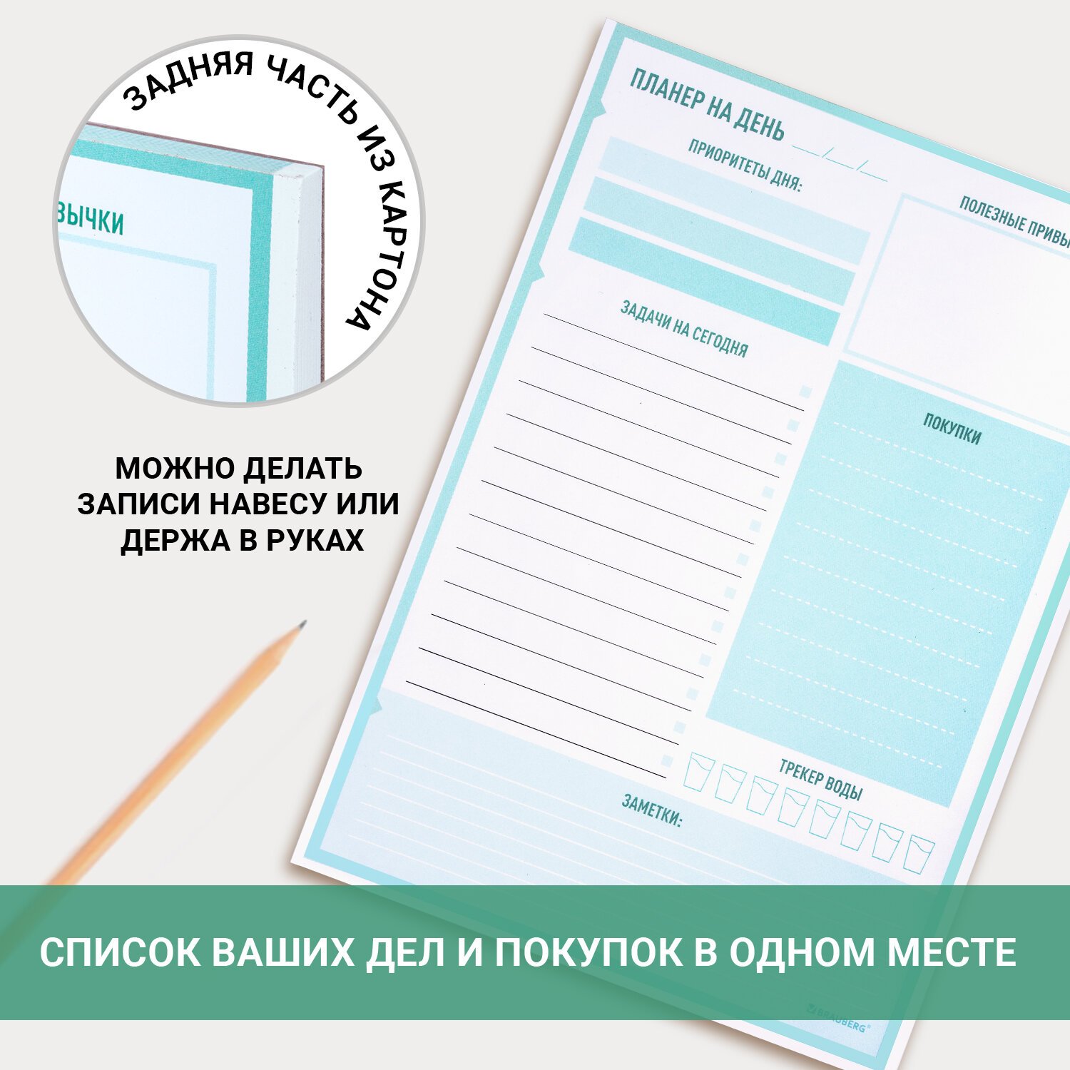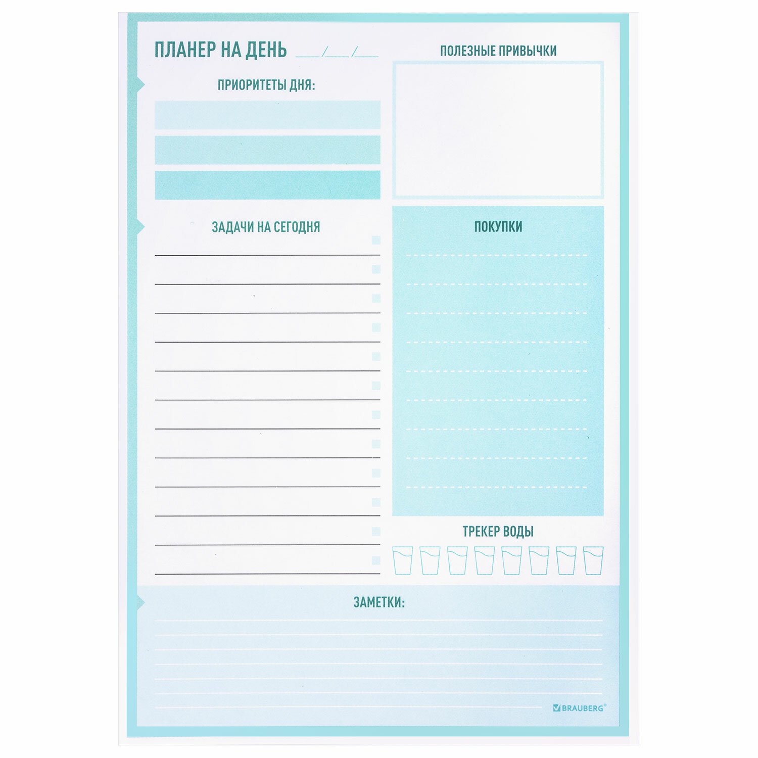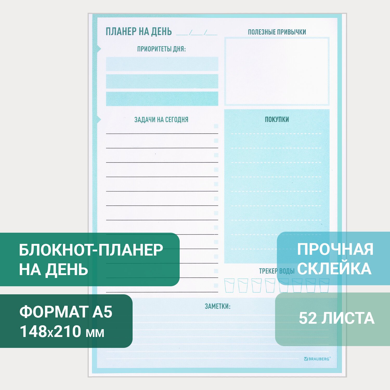 Блокнот-планер НА ДЕНЬ недатированный отрывной с подложкой, 52 л., 148х210 мм, BRAUBERG, 114216