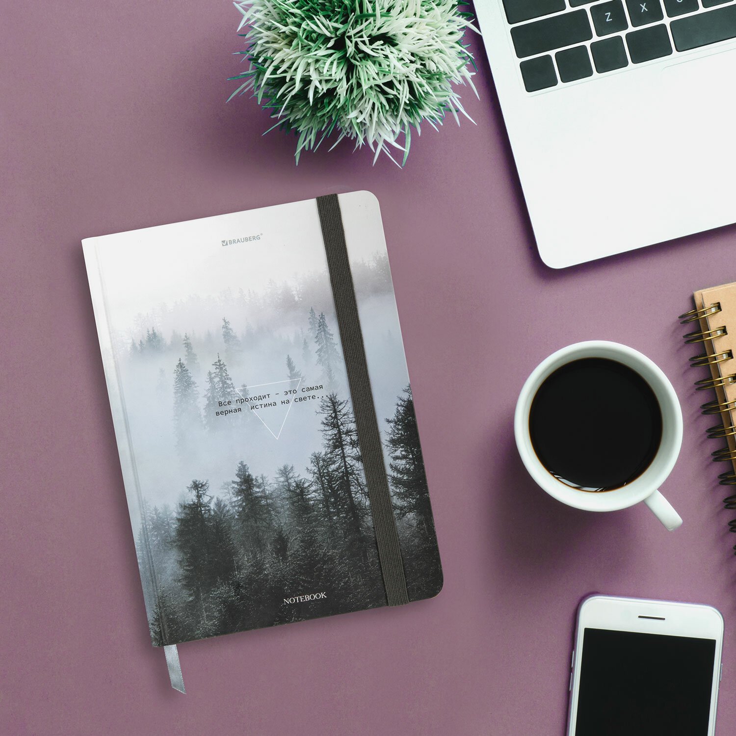 Блокнот с резинкой в клетку 96 л., А5 145х203 мм, твердая обложка, BRAUBERG, "Nature", 115534