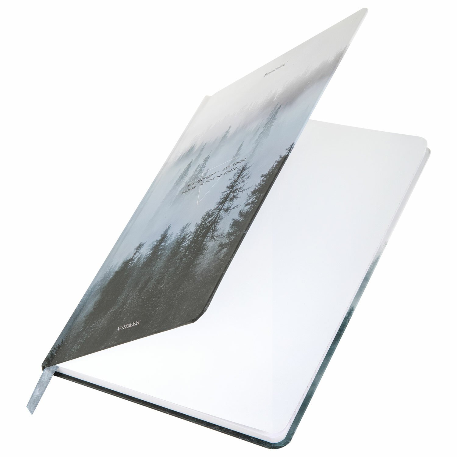 Твердая обложка блокнота с матовым покрытием имеет закругленные углы и резинку-фиксатор, благодаря чему листы надёжно защищены от замятия. 96 листов в клетку позволяют зафиксировать большой объем информации, а также подходят для зарисовок. Внутренний блок выполнен из офсета белого цвета плотностью 60 г/м2 и крепится к обложке с помощью книжного переплета. Формат блокнота А5 (145х203 мм) позволит владельцу поместить его в портфель или сумку малых габаритов.