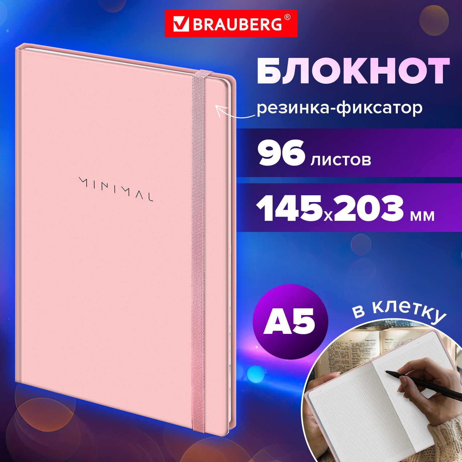Блокнот с резинкой в клетку 96 л., А5 145х203 мм, твердая обложка, BRAUBERG, "Pastel", 115533