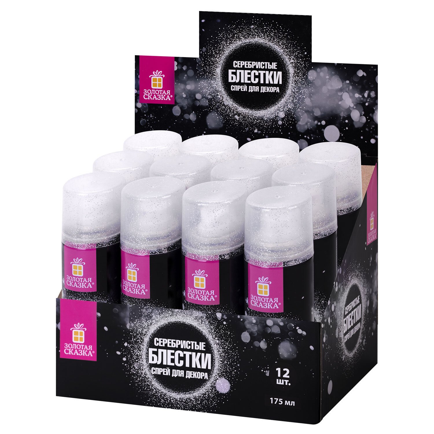 Блёстки для декора в спрее СЕРЕБРИСТЫЕ, 175 мл, ЗОЛОТАЯ СКАЗКА, 592284