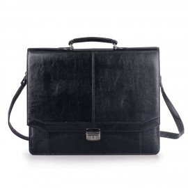 Портфель "Бизнес", 41х34х10 см, искусственная кожа, 3 отделения, замок с ключом, черный, 309