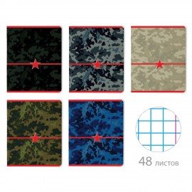 Тетрадь А5 48 л. АЛЬТ скоба, клетка, глянцевый лак, "Милитари. Камуфляж" (5 видов), 7-48-604