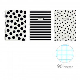 Тетрадь А4 96л. АЛЬТ гребень, клетка, глянцевая ламинация, BLACK&WHITE (3 вида), 7-96, 7-96-1354