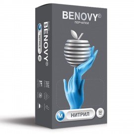 Перчатки нитриловые смотровые 100 пар (200 шт.), размер M (средний), BENOVY Nitrile Chlorinated