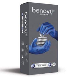 Перчатки латексные смотровые 25 пар (50 шт.), размер M (средний), синие, BENOVY High Risk, -