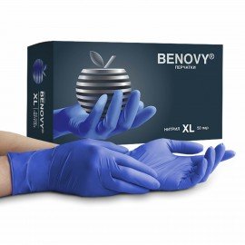Перчатки нитриловые смотровые 50 пар (100 шт.), размер L (большой), BENOVY Nitrile Chlorinated