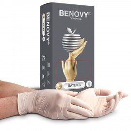 Перчатки латексные смотровые 50 пар (100 шт.), размер М (средний), BENOVY Latex Chlorinated, 21529