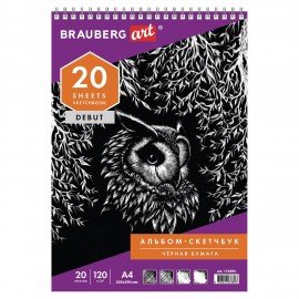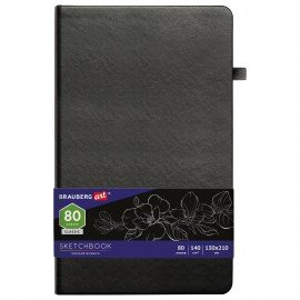 Скетчбук для маркеров, бумага ВХИ 200 г/м2 145х205 мм, 40 л., гребень, твердая обложка, ЧЕРНАЯ, BRAUBERG ART CLASSIC, 115079