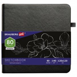 Скетчбук для маркеров, бумага ВХИ ГОЗНАК 200 г/м2 190х190 мм, 40 л., гребень, твёрдая обложка, ЧЕРНЫЙ, BRAUBERG ART CLASSIC, 115081