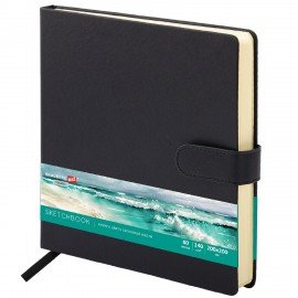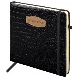 Скетчбук для графики и маркеров, "БРИСТОЛЬ" 200 г/м2, 195х195 мм, 32 листа, КОЖЗАМ, BRAUBERG ART PREMIERE, Черный, 115100