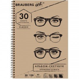 Скетчбук для маркеров, бумага ВХИ 200 г/м2 210х297 мм, 30 л., гребень, твердая обложка, ЧЕРНАЯ, BRAUBERG ART CLASSIC, 115080