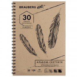 Скетчбук, белая бумага 100 г/м2, 105х148 мм, 60 л., гребень, жёсткая подложка, BRAUBERG ART DEBUT, 110997