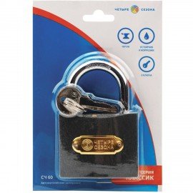 Замок навесной, ширина 60 мм, чугун, дужка d-8,4 мм, английский, 3 ключа, в блистере, 79-0006