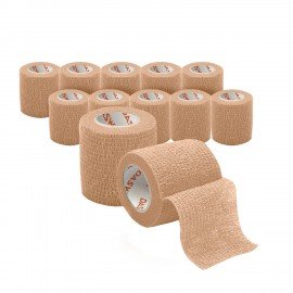 Бинт эластичный бандажный защитный самофиксирующийся, 4,5 м х 5 см, 12 рулонов, бежевый, DASWERK, 680042