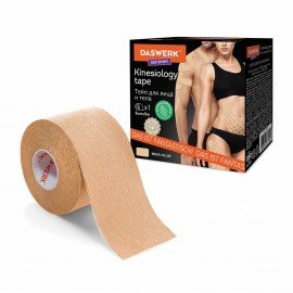 Кинезио тейп/лента для лица и тела, омоложение и восстановление, 5 см х 5 м, бежевый, DASWERK, 680003