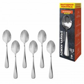 Ложки чайные 13,5 см, STANDARD, КОМПЛЕКТ 6 шт., полированная нержавеющая сталь, серебристые DASWERK, 609075