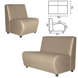 Диван мягкий двухместный "Клауд", "V-600", 1100х750х780 мм, без подлокотников, экокожа, бежевый