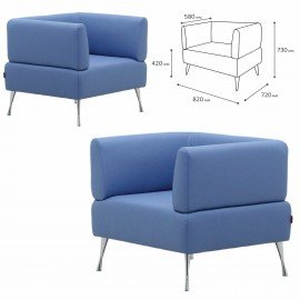 Кресло мягкое "Хост" М-43, 620х620х780 мм, без подлокотников, экокожа, голубое