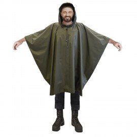 Дождевик-пончо хаки на кнопках многоразовый с ПВХ покрытием и мешком для хранения ГРАНДМАСТЕР, 610882