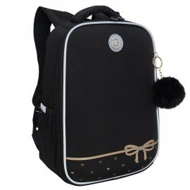 Ранец GRIZZLY анатомическая спинка, c брелоком, для девочек, "HEARTS", чёрный 36х28х20 см, RAz-586-5/1
