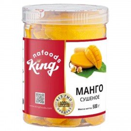 Манго натуральное KING, сушеное, 500 г, пластиковая банка, 10101-8