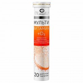 Мультивитамин+D3, шипучие таблетки со вкусом апельсина 20 шт., БАД, МИРРОЛЛА, ЦБ-00015197