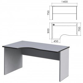 Стол письменный эргономичный "Монолит", 1400х900х750 мм, правый, цвет серый, СМ4.11