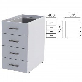 Тумба (каркас БЕЗ КРЫШКИ) приставная "Монолит", 400х416х728 мм, 4 ящика, серая, ТМ05.11