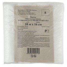 Бинт марлевый стерильный NEW LIFE 10 м х 16 см, плотность 28 (±2) г/м2, индивидуальная упаковка, 150202
