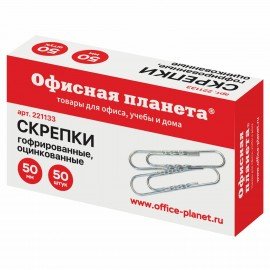 Скрепки большие 50 мм, ОФИСНАЯ ПЛАНЕТА, оцинкованные, гофрированные, 50 шт., РОССИЯ, 221133