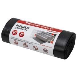 Мешки для мусора 60 л черные в рулоне 20 шт. прочные, ПНД 15 мкм, 60х70 см, ОФИСНАЯ ПЛАНЕТА, 601384