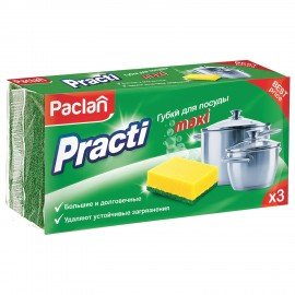 Губки бытовые для мытья посуды, КОМПЛЕКТ 3 шт., чистящий слой (абразив), PACLAN "Practi Maxi", 409121