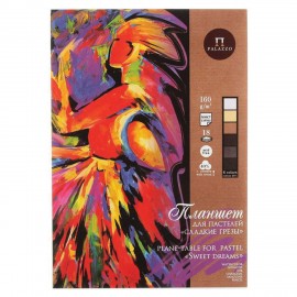 Папка для пастели / планшет БОЛЬШАЯ А3, 18 л., 6 цв.,160 г/м2, тонированная бумага, подложка, "Сладкие грёзы", ППГ/А3