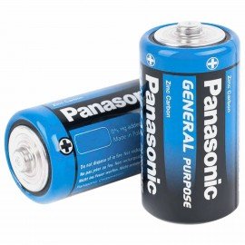 Батарейки КОМПЛЕКТ 2шт., PANASONIC D R20 (373), солевые, в пленке, 1.5 В