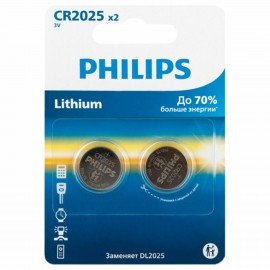 Батарейки литиевые PHILIPS Lithium CR2025, таблетки, дисковые, кнопочные, КОМПЛЕКТ 2 шт., в блистере, Б0064660