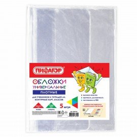 Обложка ПВХ для учебников и тетрадей А4 БОЛЬШОГО ФОРМАТА, контурных карт, атласов, ПЛОТНАЯ, 120 мкм, 302х440 мм, прозрачная, ПИФАГОР, 224842