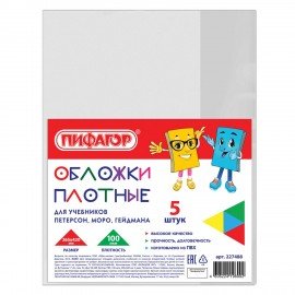 Обложка ПВХ для учебников Петерсон, Моро, Гейдмана, ПЛОТНАЯ, 120 мкм, 270х415 мм, прозрачная, ПИФАГОР, 224843
