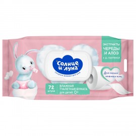 Бумага туалетная влажная детская 72 шт, СОЛНЦЕ И ЛУНА с экстрактом череды, крышка кла, 14123