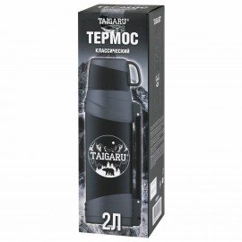 Термос классический, нержавеющая сталь 2 л, черно-серый, 2 кружки, ручка + ремешок, TAIGARU, 608818