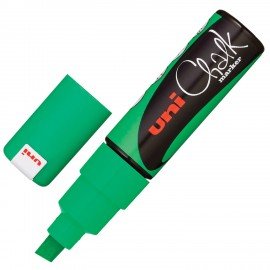 Маркер меловой UNI "Chalk", 8 мм, ЗЕЛЕНЫЙ, влагостираемый, для гладких поверхностей, PWE-8K F.GREEN