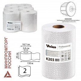 Полотенца бумажные рулонные 150 м, VEIRO (Система H1) COMFORT, 2-слойные, белые, КОМПЛЕКТ 6 рулонов, K203