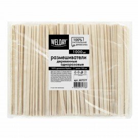Размешиватель одноразовый деревянный 180 мм, КОМПЛЕКТ 1000 шт., WELDAY, 607577