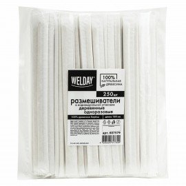Размешиватель одноразовый деревянный в индивидуальной упаковке 180 мм, КОМПЛЕКТ 250 шт., WELDAY, 607579, 97