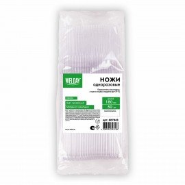 Нож одноразовый полипропиленовый 173 мм белый, КОМПЛЕКТ 50 шт., ПРЕМИУМ, WELDAY, 881108