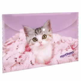 Папка для тетрадей ЮНЛАНДИЯ А4, 1 отделение, пластик, на молнии, "Sweet whiskers", 272137