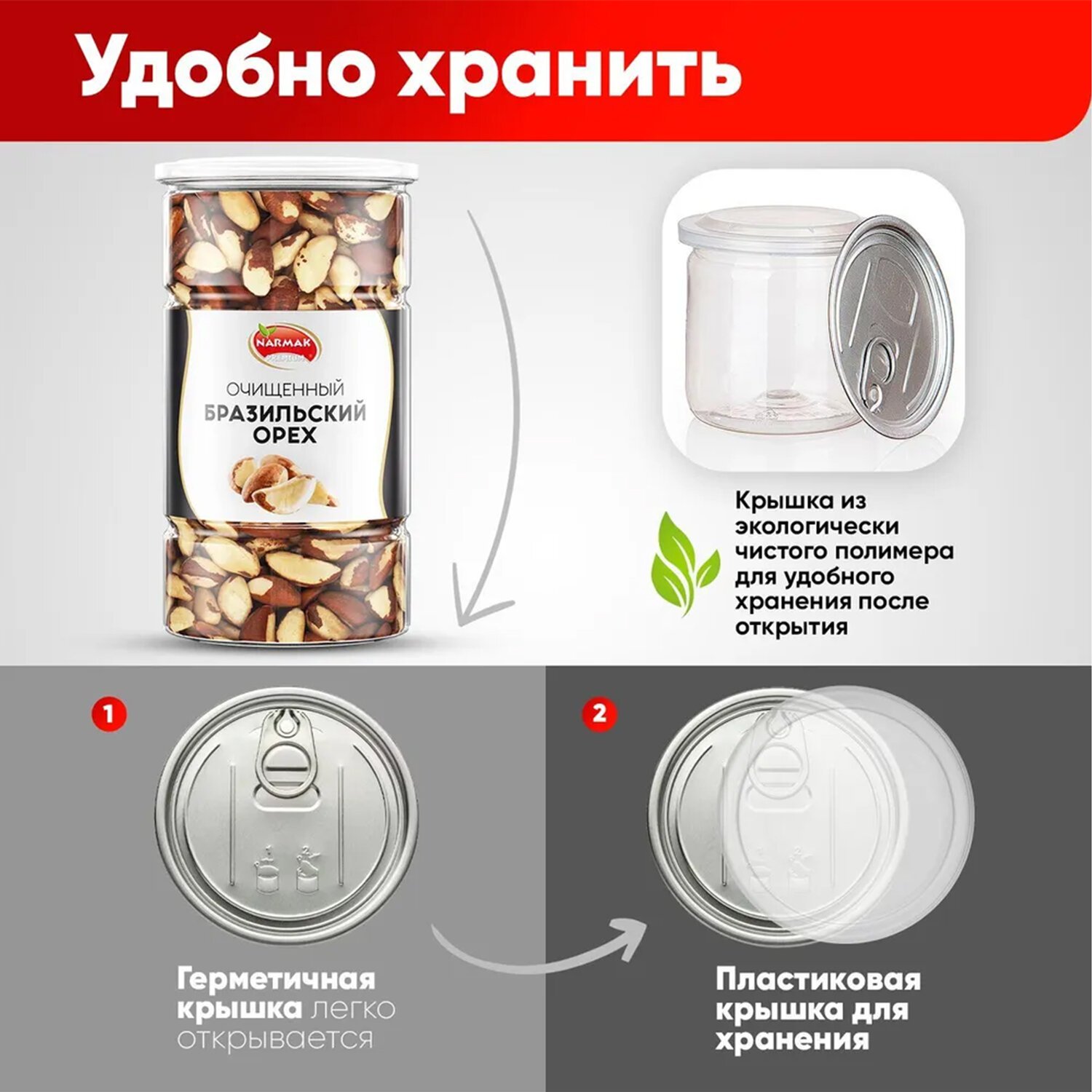 Бразильский орех NARMAK – это богатый источник энергии для нашего организма, он содержит много полезных питательных веществ и витаминов. Его можно использовать как полезный и вкусный перекус в течение дня.
